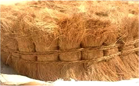 COCONUT FIBRE is a versatile natural fiber extracted from monocarp tissue, or husk of the coconut fruit Generally fiber is of golden color when cleaned after removing from coconut husk; and hence the name ” The Golden Fiber”.